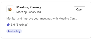 Open Microsoft Teams, go to apps (in the left hand bar) and search for Meeting Canary.